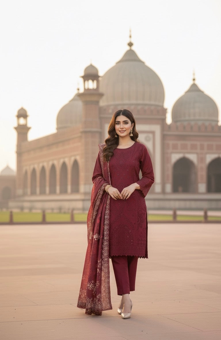 Full embroidery + handmade work goodlooking woman dress 3pc (fabric winter cotton)